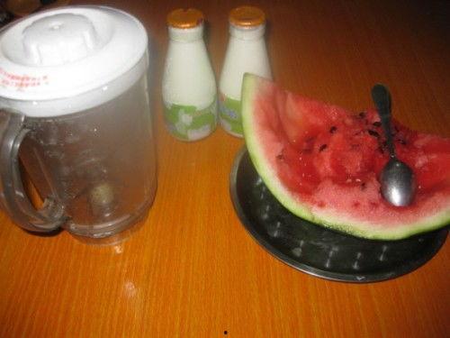 2. 尝试将牛奶和瓜果混合在一起,制作成一杯清凉的饮品。